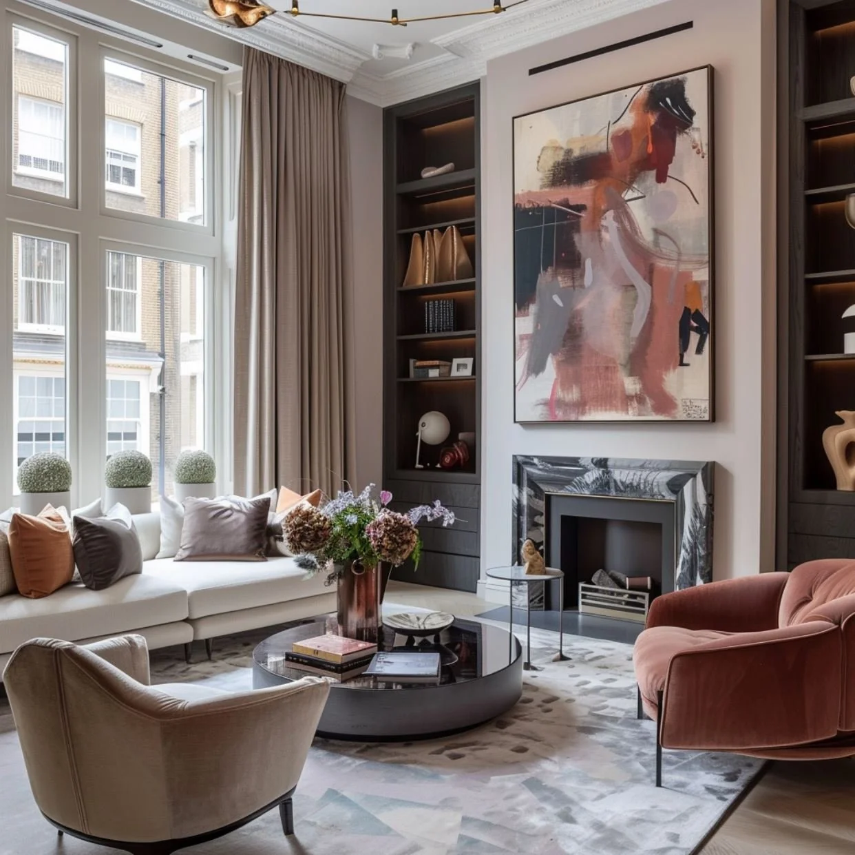 Take full advantage of this by making clever use of the living room alcoves. Use the space either side of the chimney breast to add extra storage – whether it’s built-in storage, floating shelves, or a freestanding console.